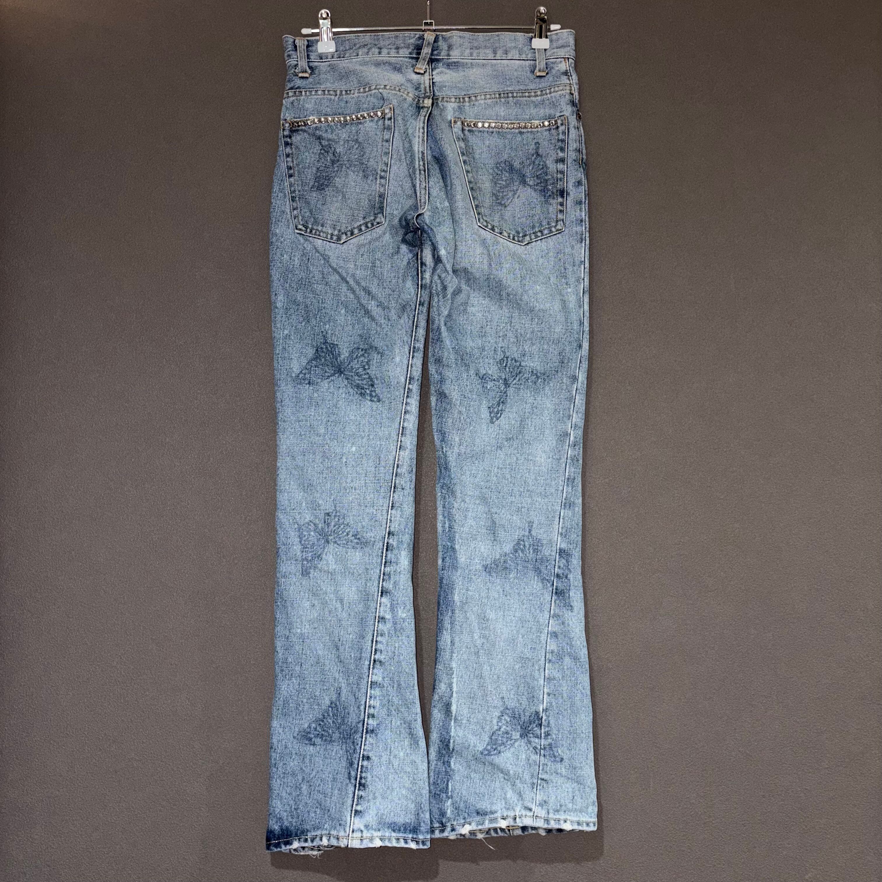 Butterfly Silhouette Rhinestone Flare Denim Pants (USED REMAKE)