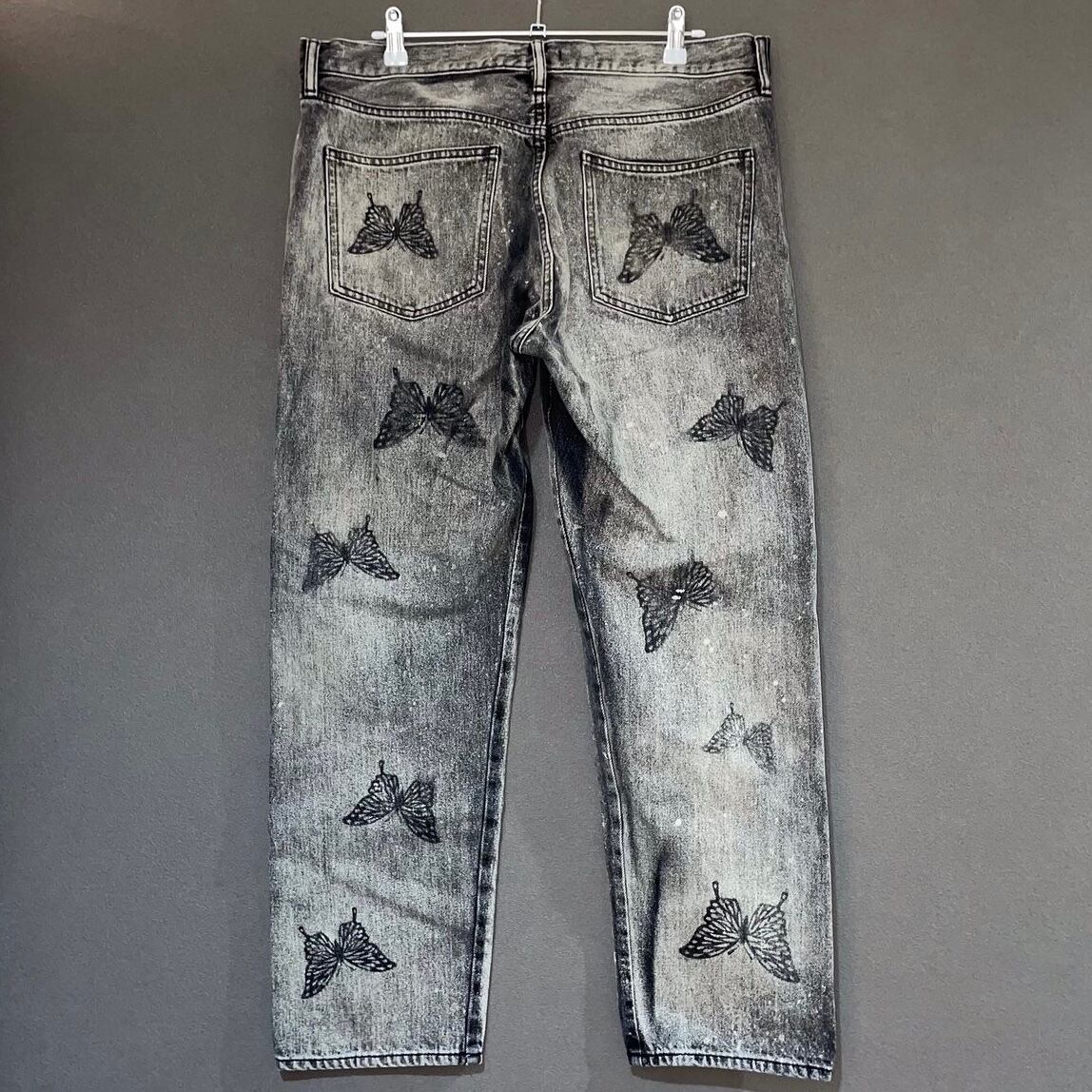 Butterfly silhouette straight denim pants (USED REMAKE)